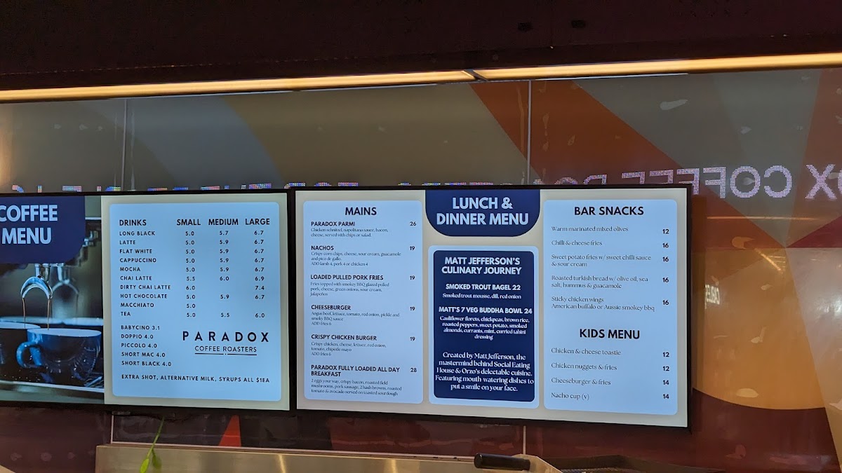 Paradox Coffee Gold Coast Airport Menu
